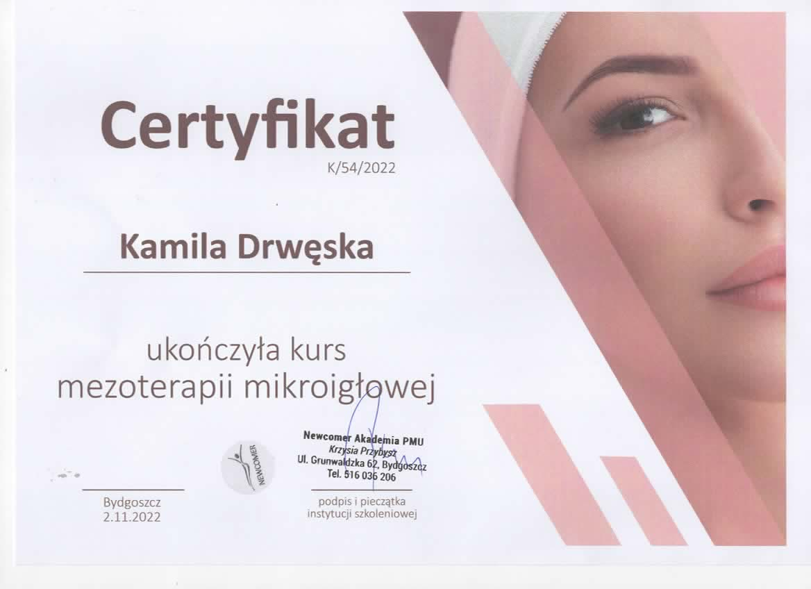Nazywam się Kamila Drwęska i jestem magistrem kosmetologii. Od ponad 3 lat prowadzę gabinet Przepiękniej - miejsce, w którym możecie zadbać o swoją skórę i paznokcie, a także oderwać się od codzienności podczas zabiegów relaksacyjnych i masaży kobido.